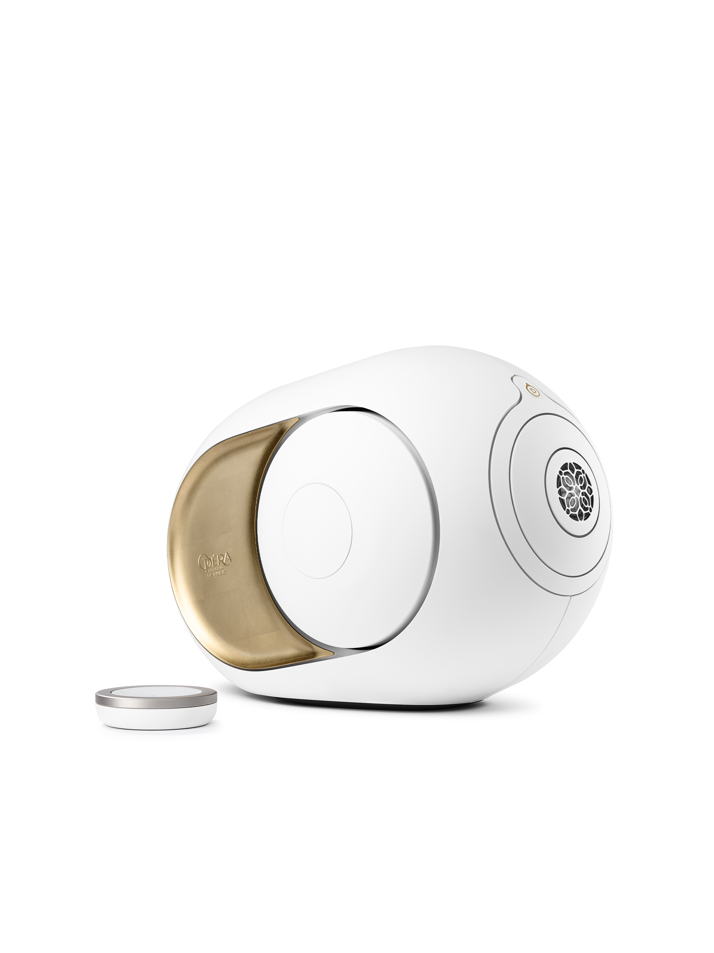 Mang dấu ấn Phantom I 108 dB Opéra de Paris | Devialet, hai mặt bên mạ Moon Gold, một hợp kim vàng palladium không gỉ đắt giá.